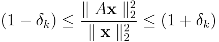 (1-\delta_k) \leq \frac{\parallel A{\bf x}\parallel_2^2}{\parallel {\bf x}\parallel_2^2} \leq (1+\delta_k)